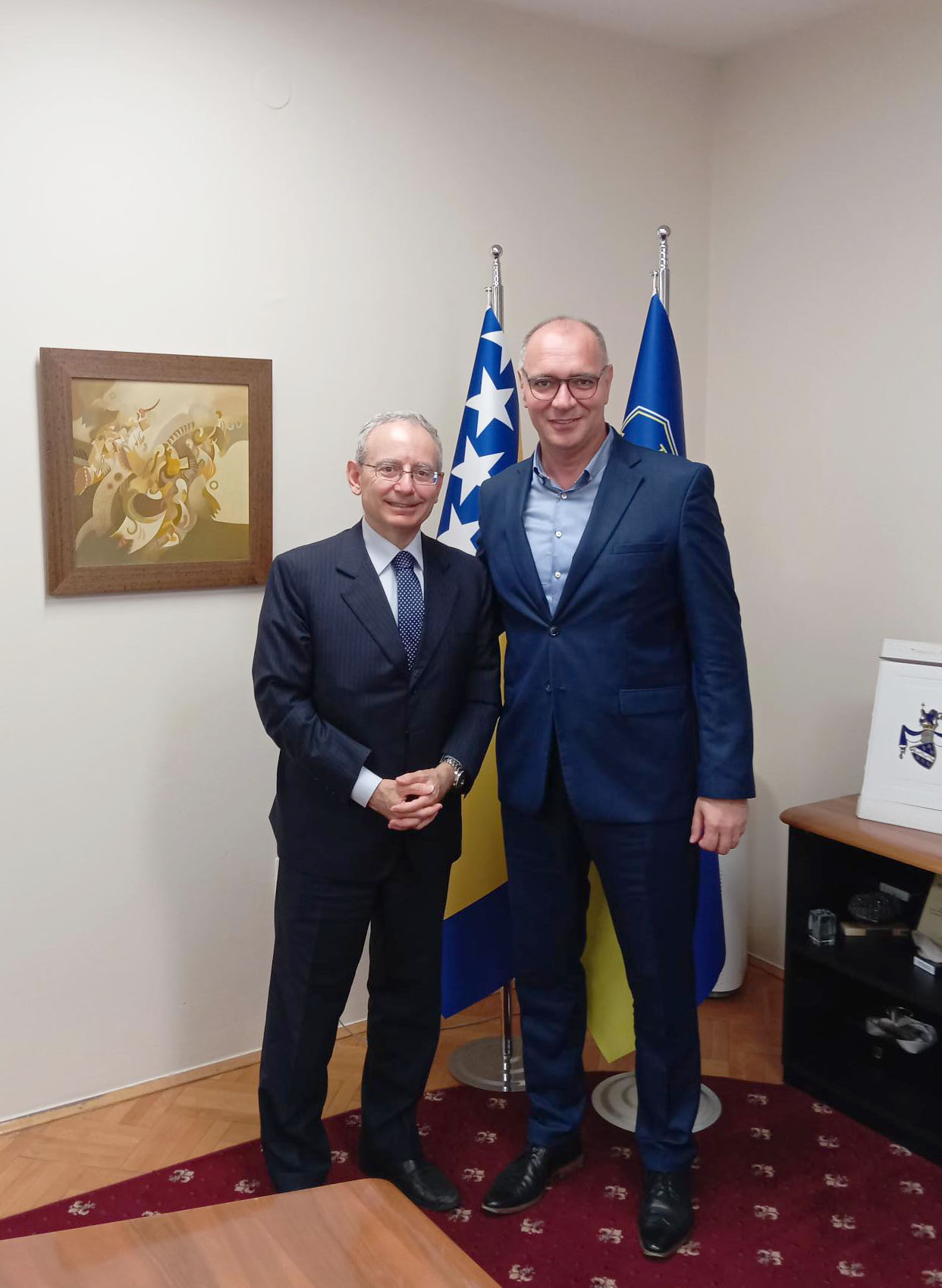 Gradonačelnik Tuzle, dr. sc. Zijad Lugavić, jučer je u Gradskoj upravi Tuzle ugostio Nj.E. Marca di Ruzzu, ambasadora Italije u BiH. Tokom sastanka, obostrano je naglašena važnost daljeg jačanja veza između Tuzle i Italije, naročito u oblastima kulture i digitalizacije javne uprave. Razgovaralo se o zajedničkim projektima koji su već u toku, kao i o podršci Bosni i Hercegovini na putu ka članstvu u Evropskoj uniji.