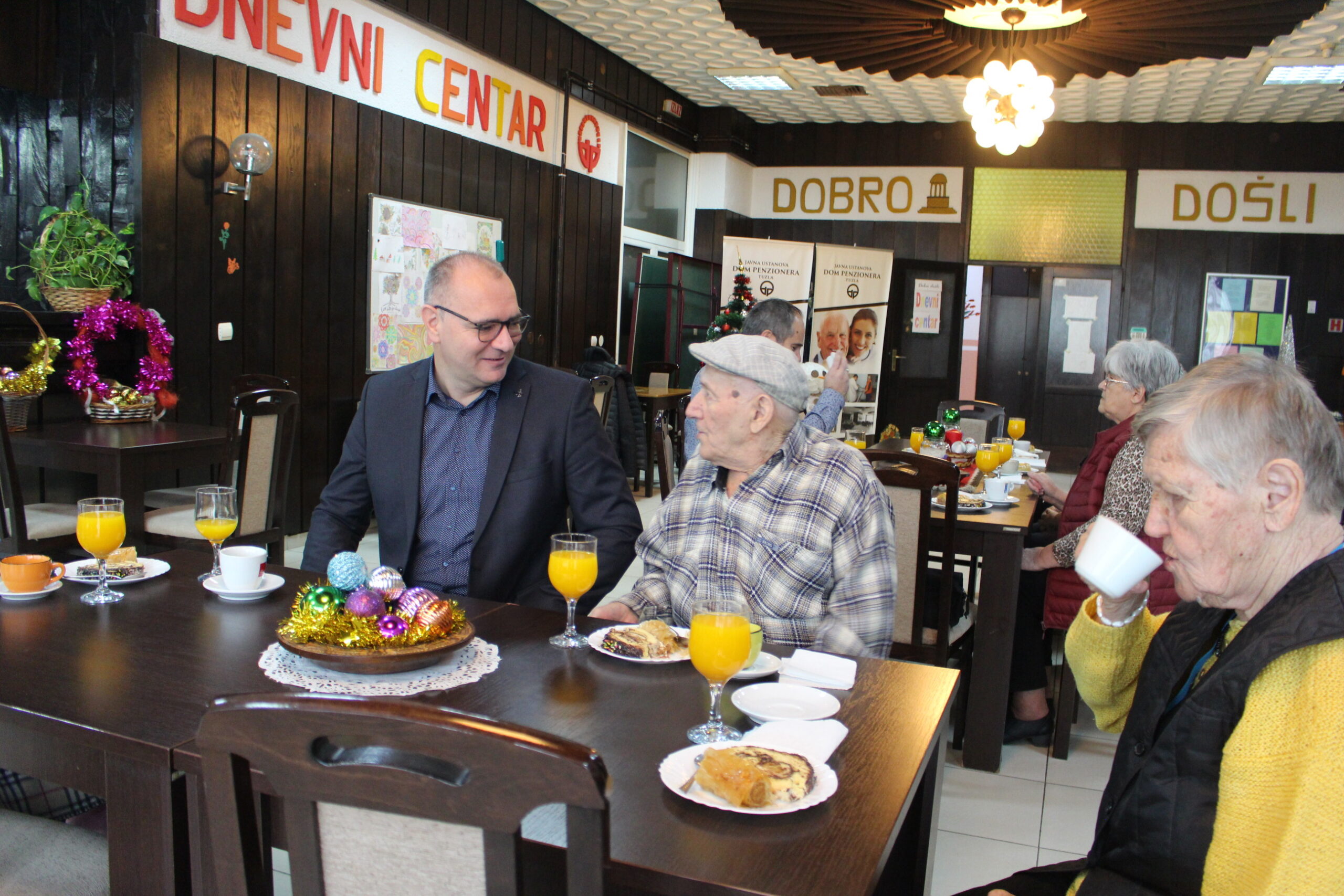 „Jutros smo došli u Dom penzionera da provedemo vrijeme zajedno sa našim penzionerkama i penzionerima, te da im lično čestitam Božić i Novu 2023. godinu. Zadovoljstvo mi je što smo se okupili u velikom broju da zajedno porazgovaramo, da se družimo, da baštinimo zajedništvo i zajednički život, a što jeste u duhu Božića. Ovdje smo da promovišemo sve one dobre vrijednosti Tuzle, a i sve ono što nam Božić donosi. Koristim priliku da svim sugrađankama i sugrađanima Tuzle, koji slave, poželim čestit i blagoslovljen Božić“, – istakao je vršilac dužnosti gradonačelnika Tuzle dr.sc. Zijad Lugavić.