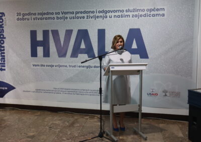 Na kraju svog govora, gradonačelnik je čestitao Fondaciji tuzlanske zajednice na dvadeset godina predanog rada i neizmjerne podrške koju pružaju zajednici, te kazao: “Ovaj događaj podsjeća nas na važnost filantropije i kako zajedničkim naporima možemo ostvariti značajne pozitivne promjene u našem gradu.”