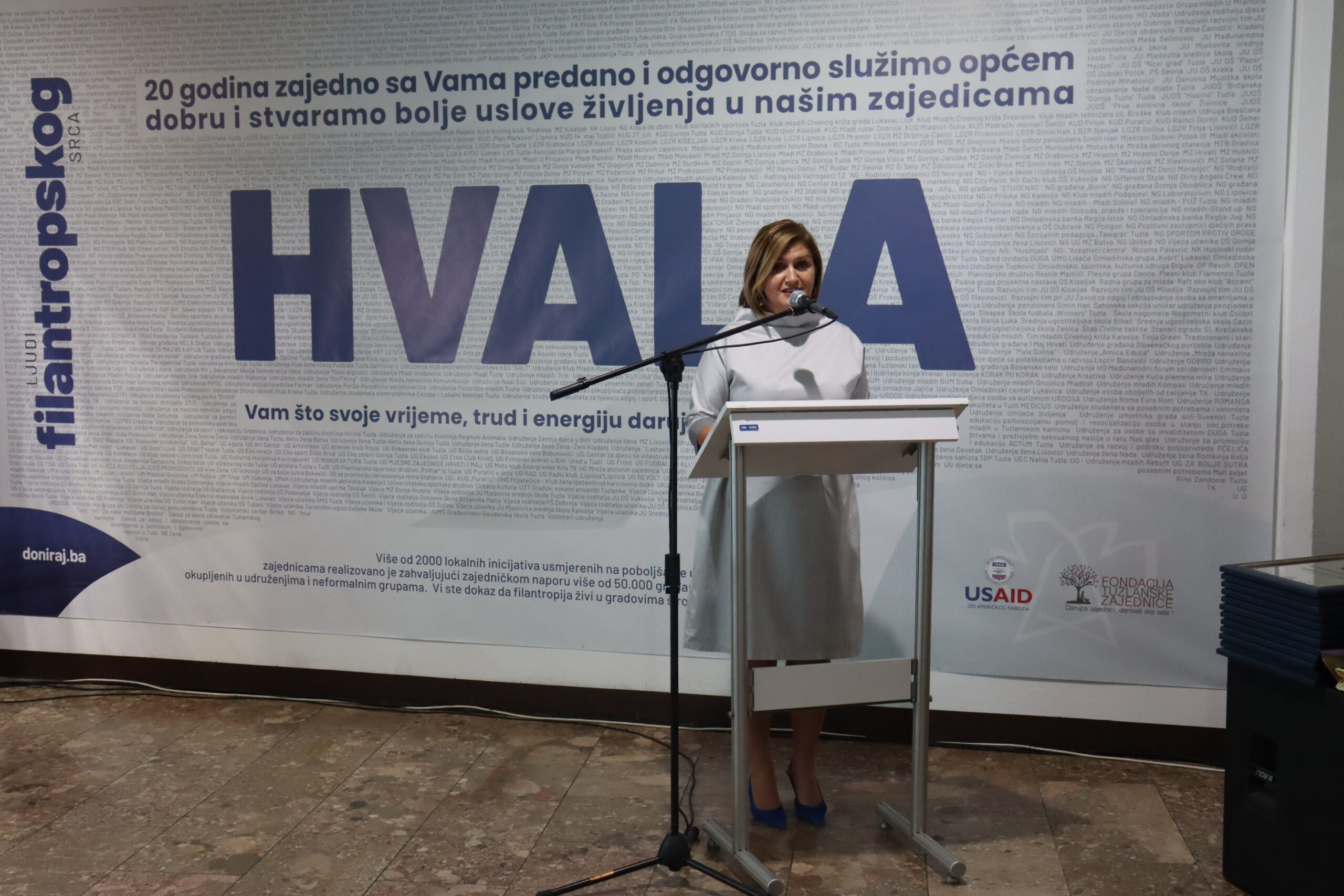 Svečanost je označila završetak manifestacije “Dani filantropije” koja se protekle sedmice održavala u gradovima Tuzla, Bijeljina, Travnik, Konjic i Kaknju. Ovaj niz događaja organizirala je Fondacija tuzlanske zajednice uz podršku USAID Snaga lokalnog projekta “Naša zajednica je naša odgovornost”. Svečanost “Slavimo filantropiju” označila je vrhunac kampanje pod nazivom “Ljudi filantropskog srca”.