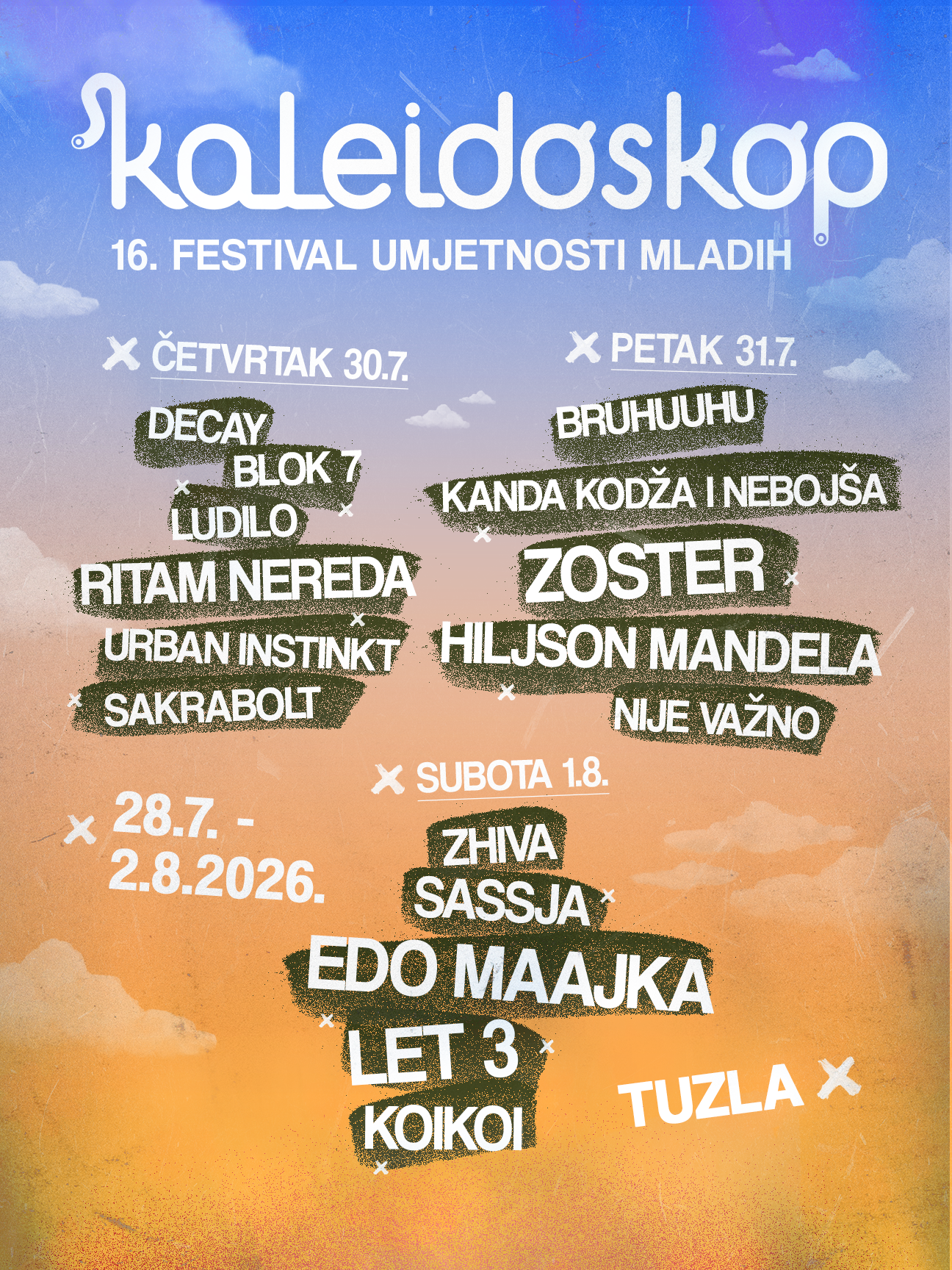 Kako je ranije najavljeno, Tuzla će od 28. jula do 2. avgusta 2026. godine biti domaćin 16. Festivala umjetnosti mladih Kaleidoskop!