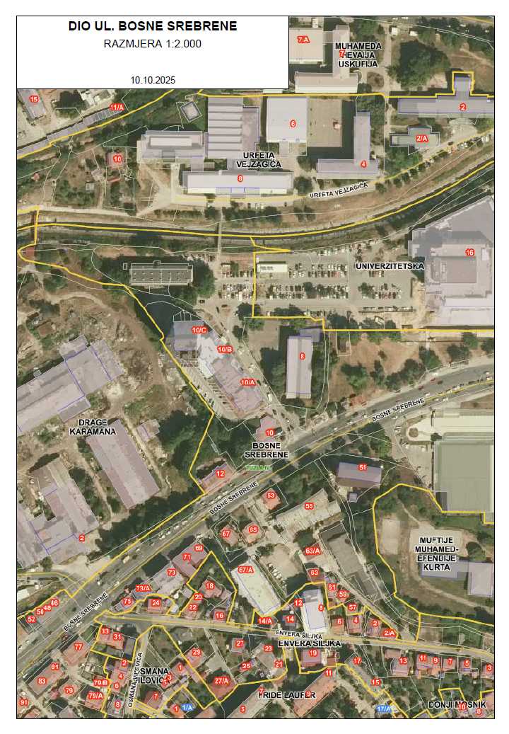 Obavještavamo građane da će Služba za komunalne poslove, izgradnju i poslove mjesnih zajednica u nedjelju 12. oktobra 2025. godine izvoditi radove asfaltiranja i iscrtavanja horizontalne signalizacije dijela Ulice Bosne Srebrene (saobraćajnica od semaforizirane raskrsnice kod Hemijske škole do rampe – ulaza na zapadni parking TC „Omega“).