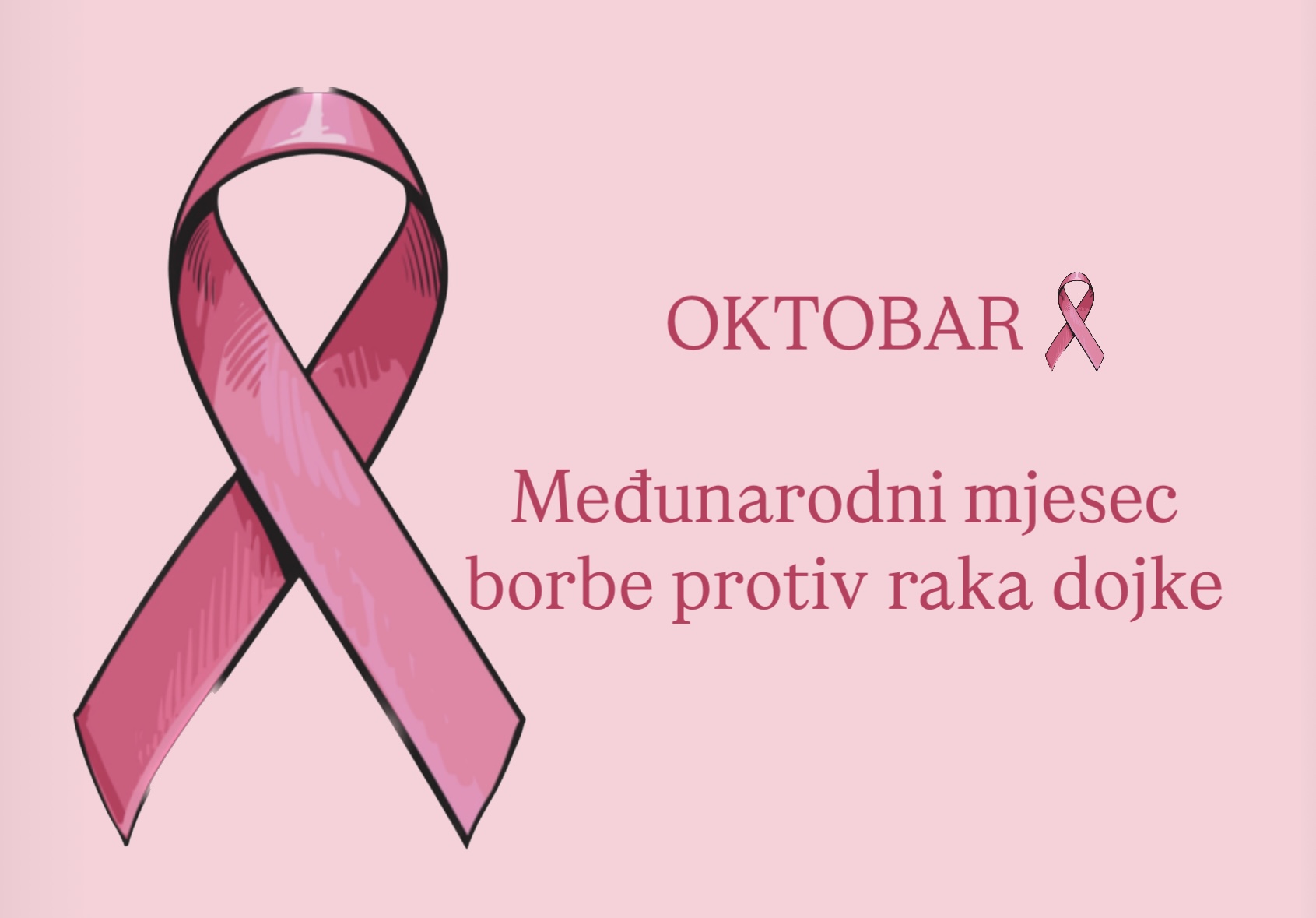 Oktobar je mjesec posvećen podizanju svijesti o borbi protiv raka dojke, a Svjetska zdravstvena organizacija 19. oktobra obilježava Međunarodni dan borbe protiv ove bolesti. Cilj je istaknuti značaj pravovremene prevencije, ranog otkrivanja i liječenja, uz poruku da niko nije sam u ovoj borbi.
