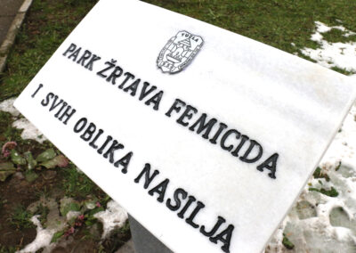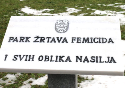 Park je oplemenjen spomen-obilježjem koje ce omogućiti dostojanstveno odavanje počasti žrtvama femicida i potrebu prevencije svih oblika nasilja.